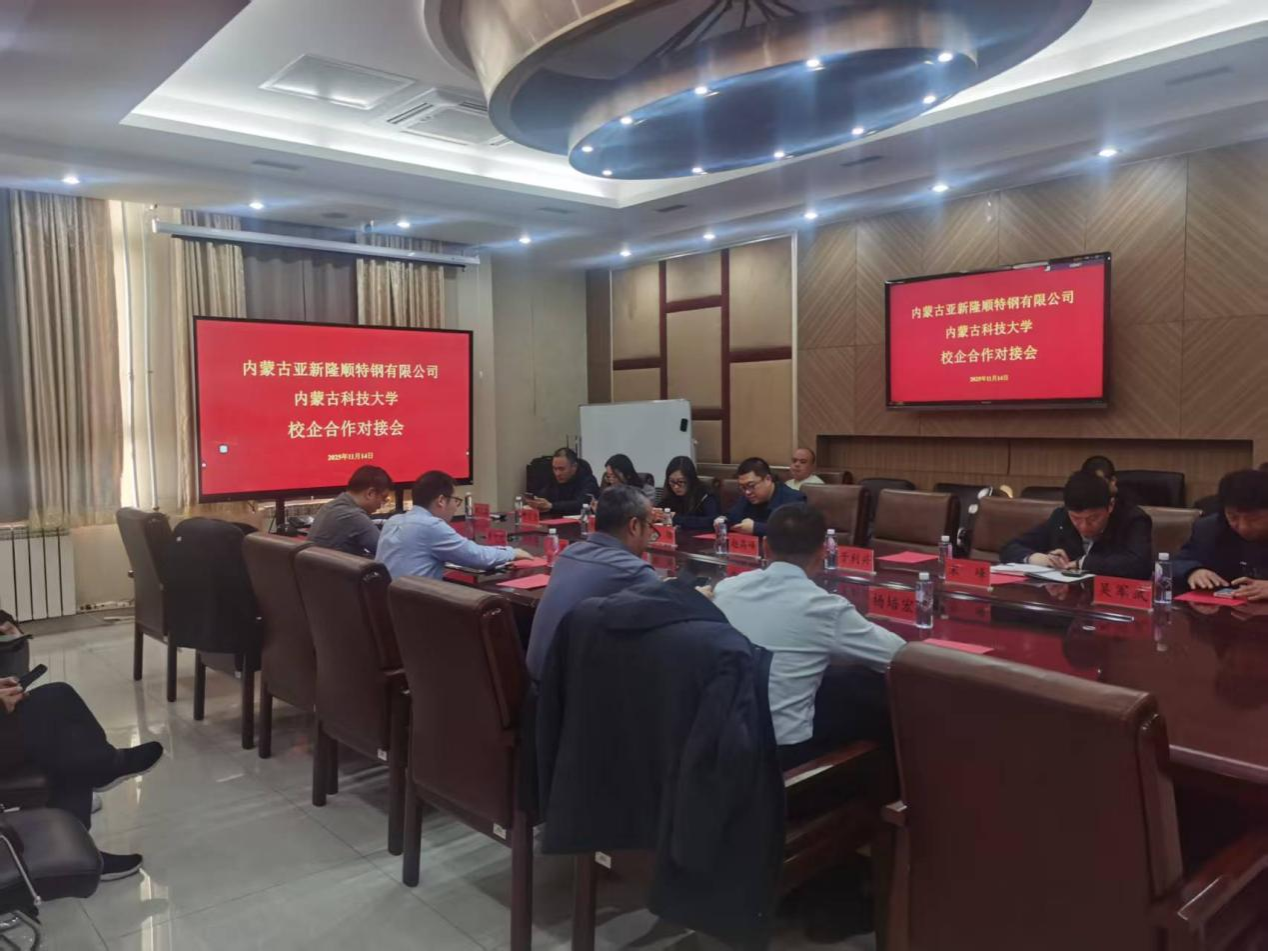 2025年11月14日,在ok138太阳集团A301会议室举行我校与内蒙古亚新隆顺特钢有限公司校企合作对接会,对深入推进产教融合、校企合作工作,进一步提升我校校企合作办学质量,聚焦校企共同育人、科研合作等,实现校企共赢。